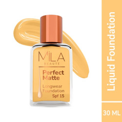 Meet your flawless match with Mila Beauté Perfect Matte Long Wear Liquid Foundation, specially formulated for Indian skin and weather. This oil-free foundation, enriched with Vitamin E, offers a smooth, matte finish that withstands the heat and humidity, ensuring your look stays fresh all day. Plus, with SPF 15, it protects your skin from harmful rays while its water-resistant power keeps your makeup intact, come rain or shine. Whether you're heading to the office or enjoying a night out, this foundation is your ultimate companion for a flawless complexion in any setting.