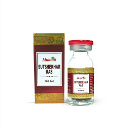 "Multani Sutshekhar Ras with Gold is a classical Ayurvedic formulation that helps in balancing Pitta and Vata doshas in the body. It is widely used for treating digestive disorders, acidity, heartburn, nausea, and gastritis. Enriched with Swarna Bhasma (Gold Ash), this herbal-mineral blend enhances its potency and effectiveness.