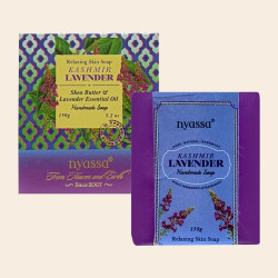 The lush aroma of herbaceous bouquet of Lavender from the superior vallleys of Kashmir in this beautifully handcrafted Kashmir Lavender Soap by Nyassa. Fall into a trance of relaxing bath with this handmade soap. It also includes the goodness of Shea Butter and Laveder Essential Oil that will caress your skin and naturally nourish it. A tender care and a realxing fragrance such as Lavender is all that you need tp recharge.