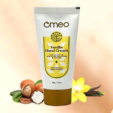 Omeo Vanilla Hand Cream is infused with the goodness of coconut oil, rose water, Vanilla extract, aloe vera and shea butter for smooth and velvety soft hands.