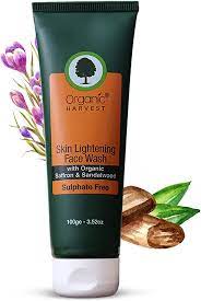 Organic Harvest Skin Lightening Face Wash with Organic Saffron and Sandalwood is a certified organic product made with plant derived ingredients. It is a gel based face wash that cleanses your skin without removing moisture. It can be used daily for cleansing the skin gently, reducing the tan and improving the skin complexion.
