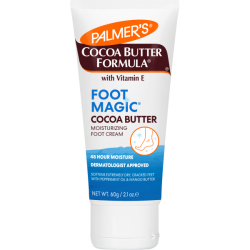 Palmer's Cocoa Butter Formula Foot Magic, made with pure Cocoa Butter, enriched with Vitamin E and other natural emollients, provides a deep penetrating treatment for the feet. This unqiue formulation moisturizes, softens and smoothes even the roughest, driest skin. The addition of Peppermint Oil revitalizes sore, tired feet.