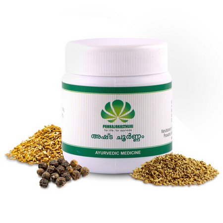 Ashtachoornam is famous for its carminative & digestive property. Ashta means – 8 – indicates that this product contains 8 ingredients. Churna means powder.