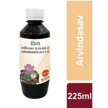 Patanjali Divya Arvindasav contains Kamal (Nelumbo nucifera), Kash (Vetiveriazizanioidis), Gambhari (Gmelinaarborea), Nelkamal (Nynphaea stellate), Manjishtha (Rubiacordifolia), Chotiela (Elattaria cardamomum), Khareti (Sidacordifolia), Jatamanshi (Nardostachysjatamansi), Nagarmotha (Cyprusrotundus), Anatmool (Hemidesmus indicus), Harad (Terminalia chebula), Behara (Terminalia belirica), Vach (Acoruscolmus), Amla (Emblicaofficinalis), Kachur (Curcuma zedoaria), Nisoth (Operculinaturpetum), Nelemool (Indigoferatinctoria), Parvalpatra (Trichosanthesdioica), Pitpapra (Fumaria vallantii), Arjun (Terminalia arjuna), Mulethi (Glycyrrhiza glabra), Madhu (Madhucaindica), Muramashi (Helioterasisora), Munnaka (Vitis vinifera), Dhaiful (Woodfordiafruticosa) and Sugar Gudd (Jaggery) as ingredients.Indications: