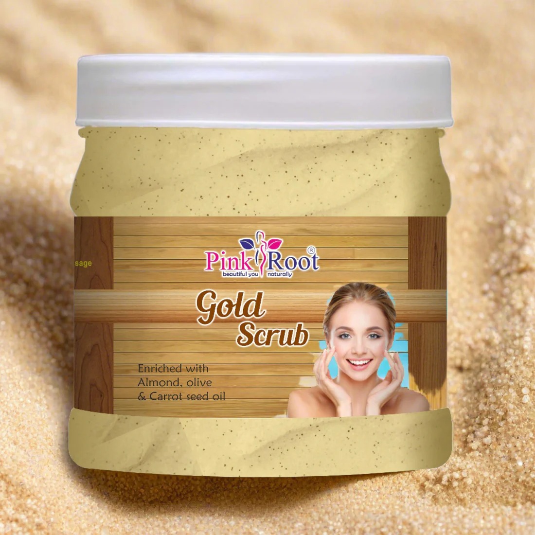 Pink Root Gold Scrub Enriched with Almond, Olive & Carrot Seed Oil helps you take care of your skin. Its 4 basic and vital skincare essentials are moisturizer, skin tone brightening, skin firming and anti-wrinkle. This facial Scrub offers intensive care and moisture for skin, tightens up skin. It also provides a natural lustre and youthful radiance appearance to all types of skin. The scrub can help protect your skin from harmful hazardous elements in the atmosphere. It contains no harmful chemicals and is safe for your skin.