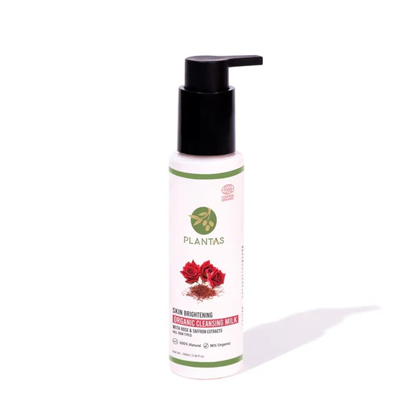 Plantas Organic Cleansing Milk :The unique cleanser removes all make up, dirt and pollution while making the skin refreshed. Natural Rose and Saffron, mixed together deeply cleanses the skin and also lightens and brightens the skin texture.