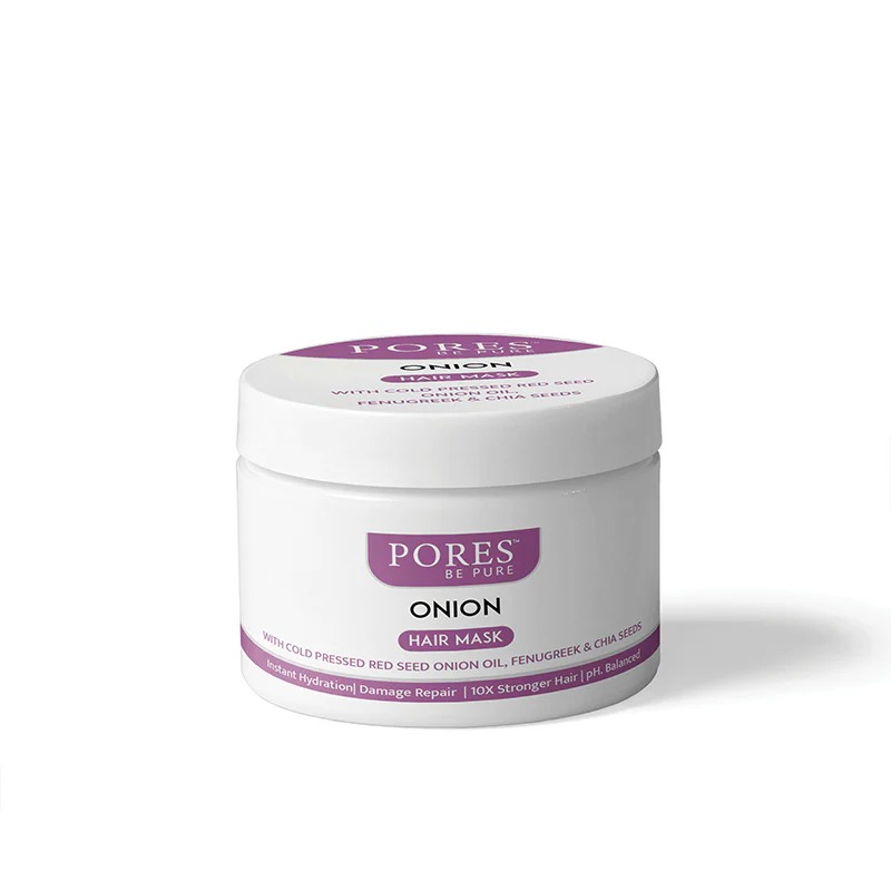 Pores Onion Hair Mask mixed with cold pressed red seed oil, fenugreek & chia seeds, gives that instant hydration to the hair and repairs damaged hair. It is a perfect blend of red seed oil with chia seeds that helps the hair to become 10x stronger and smoother.