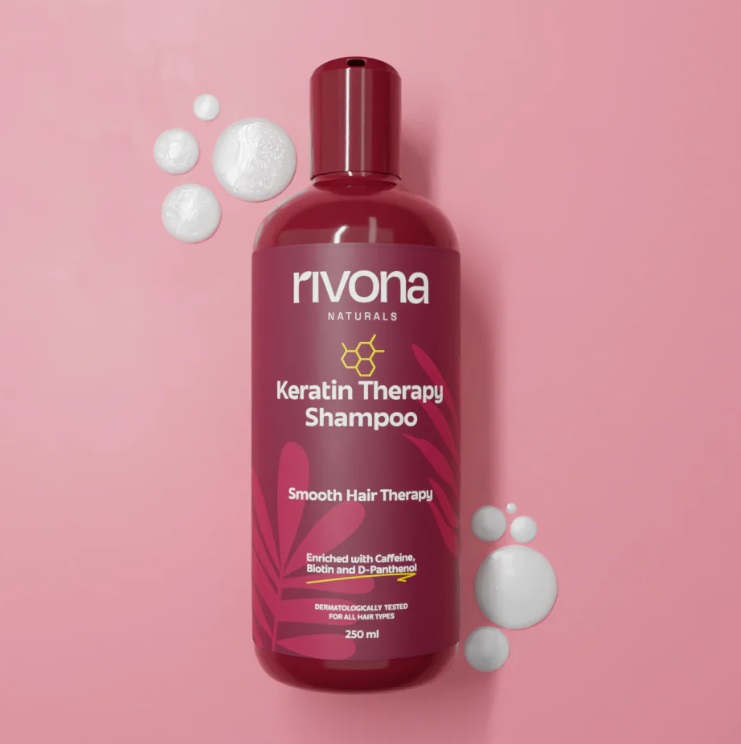 Rivona Naturals Keratin Therapy Shampoo Is Specifically Formulated To Stimulate Hair Follicles, Promoting Healthier And stronger Hair. Caffeine, Biotin and D-Panthenol work together to tame frizz and breakage. Dermatologically Tested Cruelty Free Paraben Free Silicone Free Phthalate Free pH Balanced No Harmful Chemicals Sulphate Free