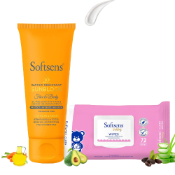 Softsens SPF 30+ water-resistant oil-free sunblock offers gentle & effective broad-spectrum sun protection for your whole family