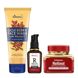 Get ready to unlock the secret to youthful, glowing skin with the St.Botanica Radiance Renewal Combo from St.Botanica. This powerful combo includes a Goji Berry Face Wash, Retinol 2.5% Face Serum, and Retinol Anti Ageing Night Cream. This combo works together to gently cleanse, hydrate, and renew your skin for a radiant, youthful glow.
