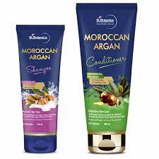 Transform your dull, dry tresses with this nourishing shampoo and conditioner set. It contains natural extracts like Moroccan Argan Oil, Olive Oil, Almond Oil and Avocado Oil.