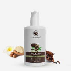 Indulge yourself in the goodness of Shea butter and cocoa butter to give your skin a satiny smooth touch. The Skin Co. brings you Shea Butter & Cocoa Butter Moisturizing Body Lotion that absorbs deep into the skin and moisturize it. Active ingredients present in it, works together to moisturize and keep the skin healthy to bring back the beautiful smooth skin. Cocoa butter possesses anti-ageing properties to make skin younger looking. So, wipe out the traces of dry and dull skin with The Skin Co. Shea Butter & Cocoa Butter Moisturizing body lotion.