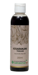 Vaidyaratnam Kesaranjini Thailam Oil is a natural hair oil and contains natural ingredients used since ancient times for its hair nourishing properties. It is highly useful in premature greying of hair and hair fall. It helps manage itchy scalp and effectively reduces dandruff