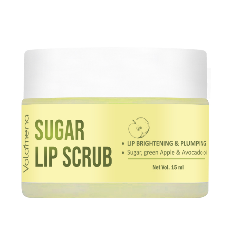Volamena Lip Scrub with Sugar, green Apple Extract & Avocado oil targets pigmentation revealing bright lips. Gentle exfoliation removes dead skin cells making lips soft and smooth, Flawless and beautifully soft.