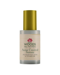 Woods All Natural Acne Control serum fights active breakouts and old acne scars to get even-toned skin. The star ingredient, Salicylic Acid is well-known for reducing acne by exfoliating the skin and cleansing the pores. It also decreases the skin's sebum production, leading to fewer breakouts. Panthenol, (Vitamin B5) another powerful ingredient has great moisturizing and healing properties that hydrates the skin, resulting in a more supple feel and appearance. This serum not only dries out active acne, unclogs and tightens skin pores but also brightens the complexion.